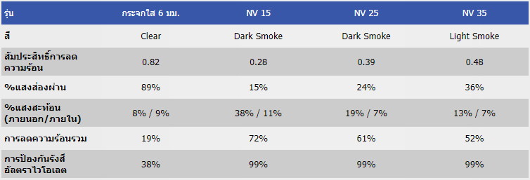 - ป้องกันรังสีอัลตราไวโอเลตสูงถึง 99%